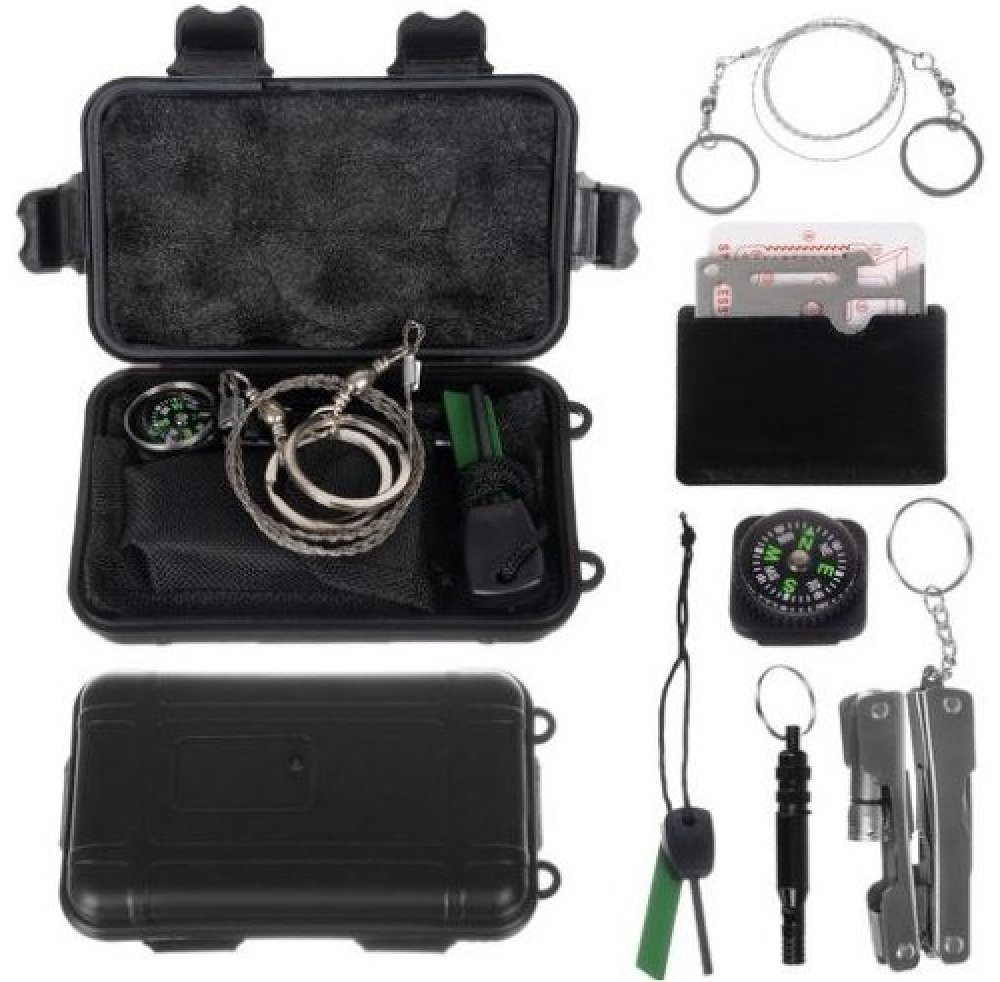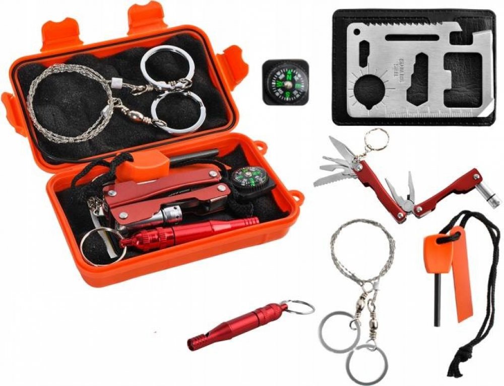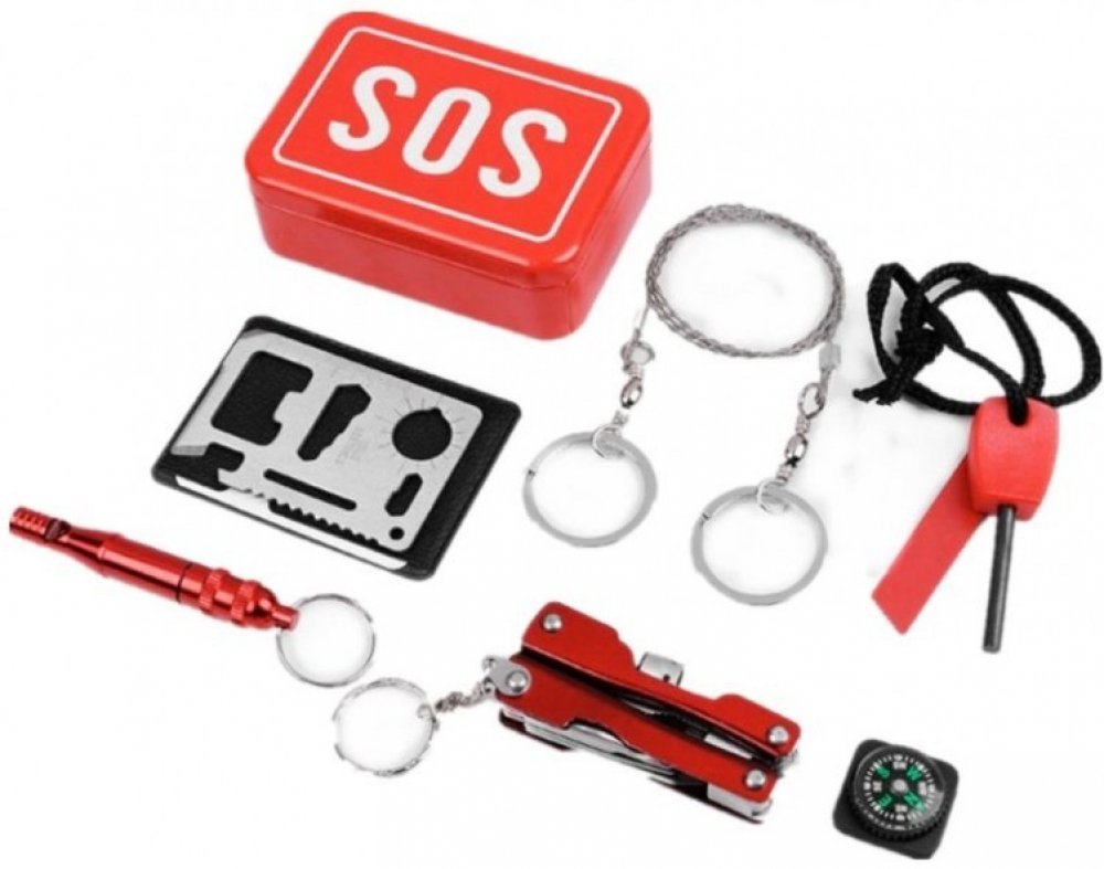 Krabička SOS která obsahuje mnoho položek vhodných pro exkurze, výlety, , kempování