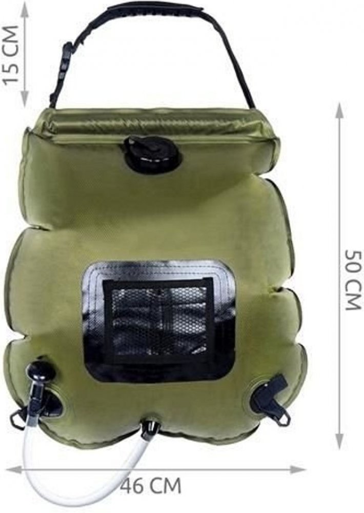 Ovládání výrobku je velmi jednoduché. Naplňte sprchu vodou, vypněte ventil, nasaďte sprchovou hadici s ruční sprchou a můžete vyrazit. Relaxační sprcha v přírodě je na dosah ruky!