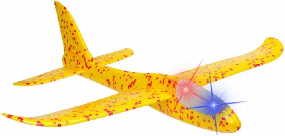 Lehké polystyrenové letadlo s aerodynamickým tvarem! Vynikající hračka pro malé i velké děti! Za příznivých podmínek (vhodný vítr) umožňuje opravdu dlouhé lety. Díky živým, sytým barvám vypadá letadlo opravdu atraktivně. Vyrobeno z lehkého pěnového polystyrenu s vysokou odolností, která zajistí dlouhou zábavu. Vybaveno barevnými RGB LED diodami, které při hře po setmění působí skvělým dojmem!POZOR...