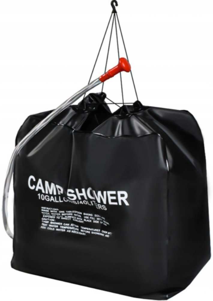 Vodou naplněný vak můžete zavěsit na strom, větev nebo na háček. Očko na zavěšení je posíleno plastovou trubičkou, takže se nemusíte bát, že náhle praskne. Černá barva vaku umožňuje rychlou absorpci sluneční energie a ohřev vody během slunečných dnů. Součástí je také ventil a sprchová hlavice. Vychutnejte si letní sprchu v kempu nebo i doma na zahradě.
