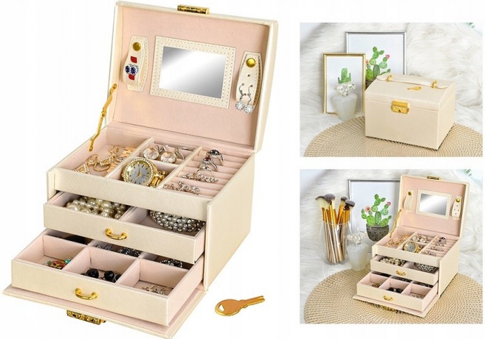 Iso Trade Šperkovnice se zrcadlem na klíč béžová