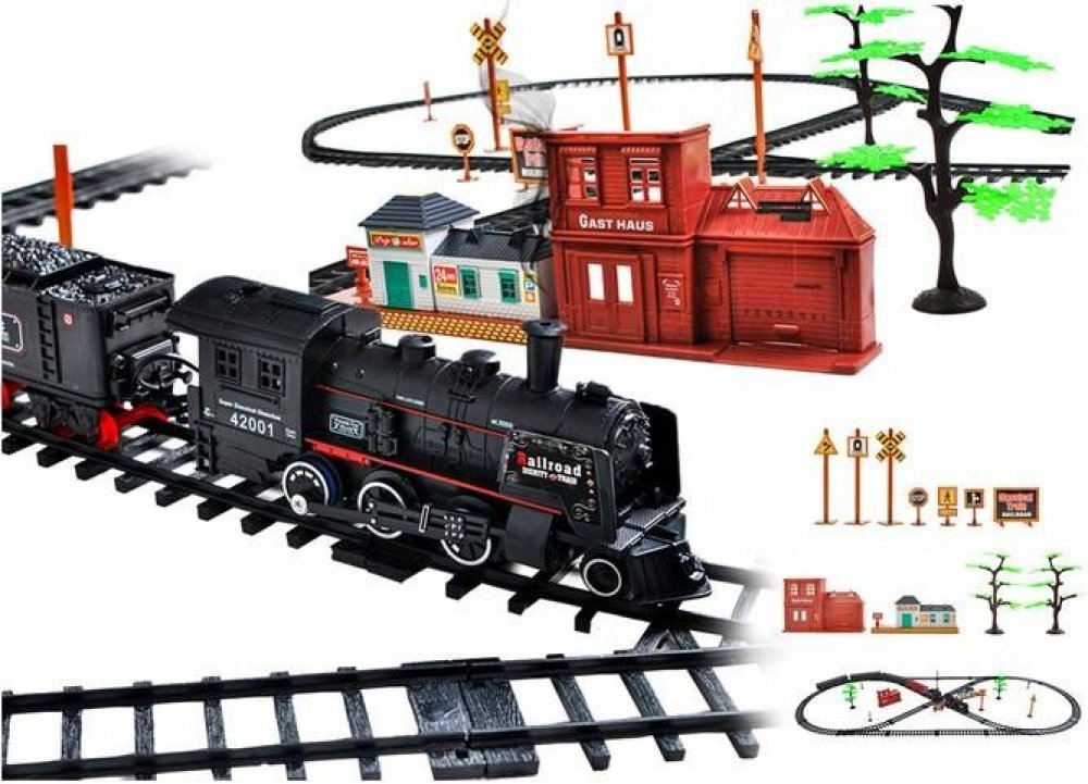 ELEKTRICKÝ VLAKImitace SKUTEČNÉHO NÁKLADNÍHO VLAKU - vlak byl navržen tak, aby do nejmenších detailů napodoboval skutečný parní vlak. Lokomotiva za jízdy vydává realistické zvuky a vypouští kouř z komína. V přední části je instalováno světlo, které se rozsvítí při rozjezdu vlaku.7 METRŮ ZÁBAVY - celková délka dráhy je až 7m! To umožňuje libovolné konfigurace uspořádání a umožňuje dítěti postavit pokaždé jinou dráhu, aby se hra nestala monotónní.SNADNÉ PŘIPOJENÍ A STABILITA - dílky kolejí lze snadno a rychle vzájemně spojovat a díky klipům zůstává konstrukce při hře stabilní.PROBUZUJE PŘEDSTAVIVOST – dává rodičům možnost aktivně si hrát se svými dětmi. Skvělá příležitost strávit čas společně. Dráhy mají velmi snadný způsob spojování, díky kterému je zvládne každé dítě. Hra s lokomotivou rozvíjí představivost, motoriku a manuální dovednosti. Prostřednictvím hry se batole učí logickému myšlení, používání předmětů a jejich vzájemnému přiřazování.SPECIFIKACE - barva: vícebarevná; materiál: plast; věk: + 3 roky; certifikáty: CE, EN71; napájení: nákladní vůz 2 AA baterie (nejsou součástí balení) ; rozměry rozložené dráhy (šířka / délka / výška): 78 / 181cm; rozměry auta (šířka / délka / výška): 5/14 / 6cm; rozměry lokomotivy (šířka / délka / výška): 6 / 18,5 / 8,5 cm; rozměry auta (šířka / délka / výška): 5/24 / 6cm; hmotnost soupravy: 1,70 kg; hmotnost s obalem: 1,85 kg.