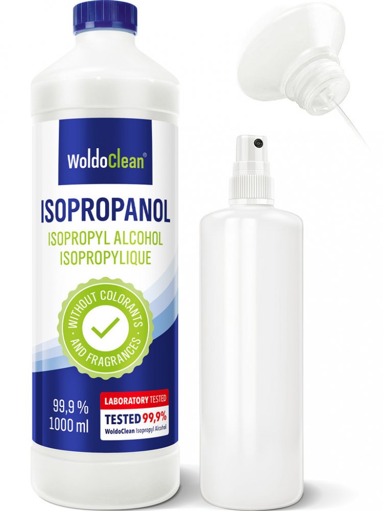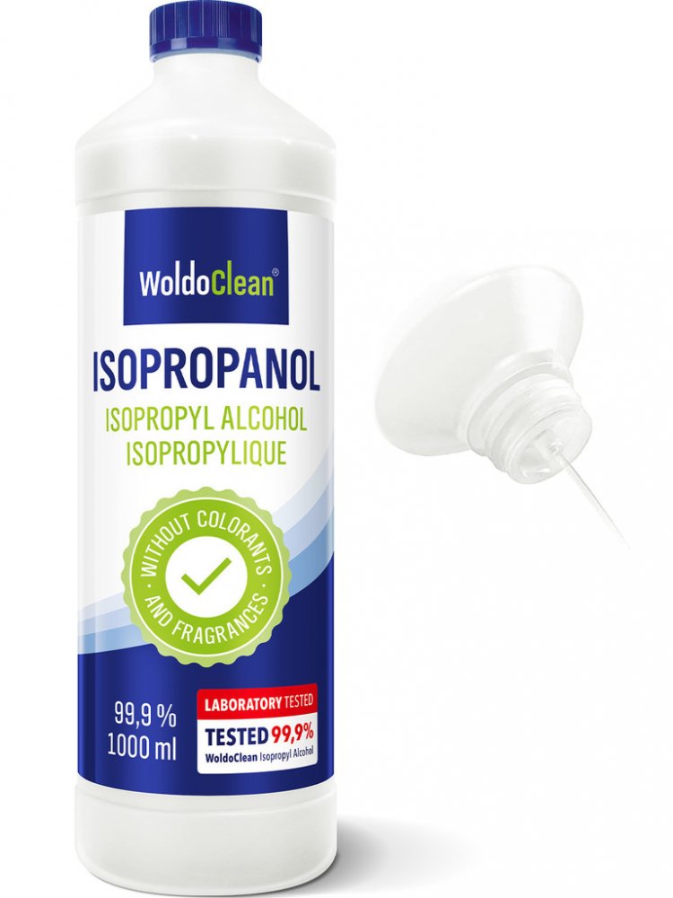 Bez přísad. IPA je 99,9% isopropylalkoholu a neobsahuje žádné přidané barviva nebo vonné látky. Výsledkem je rychlé odpařování beze zbytků a nezanechává žádné nepříjemné zápachy. Použitelné i pro elektronická zařízení, jako jsou procesory CCD snímače chladiče GPU.