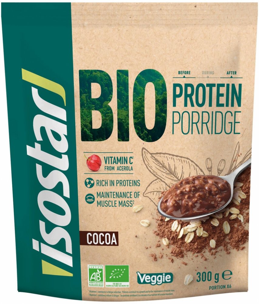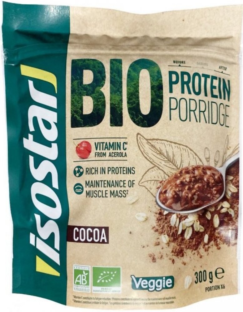 Isostar 300 se středním obsahem bílkovin s vysokým obsahem cukru v prášku – více porcí 179.0 kcal 5.5 g wholegrain oatmeal, milk powder, cocoa powder 6 ks oves