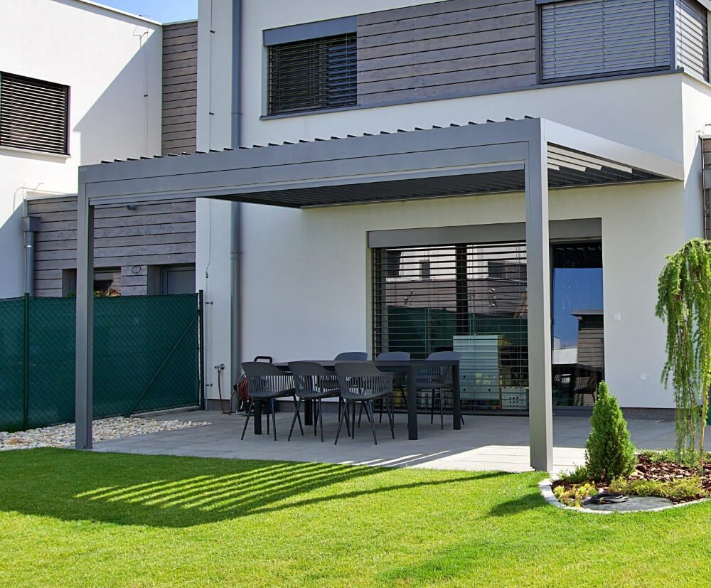 Pergola ARTOSI má naklápěcí střešní lamely, díky kterým můžete ovlivňovat zastínění pod pergolou i cirkulaci vzduchu
