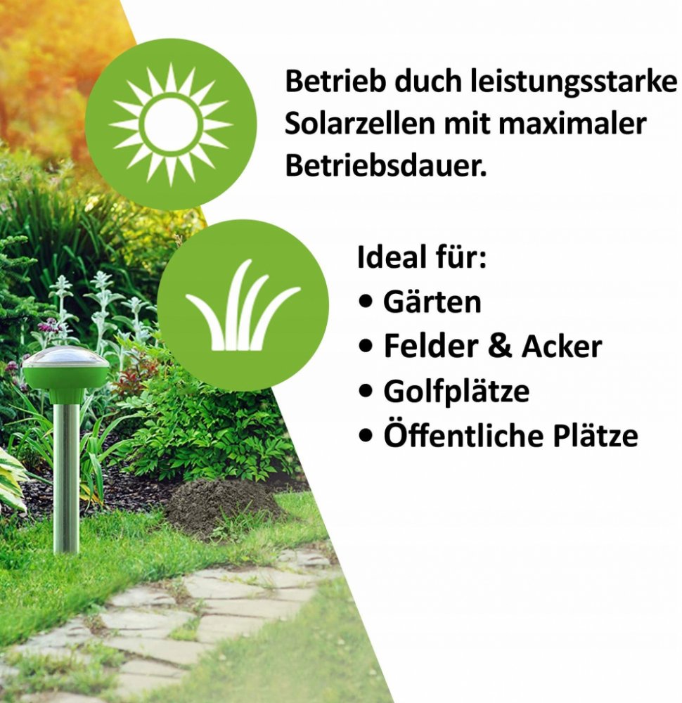 Mobilní odpuzovač krtků a hrabošů Isotronic SOLAR HAWK je ideálním pomocníkem zahrádkáře. Odpuzuje krtky, myši, hraboše, rejsky nebo mravence v oblasti až do 700 m². Vytváří vibrace, které jsou jen minimálně postřehnutelné lidským uchem, ale pro tyto živočichy jsou nesnesitelné a způsobují stejné chování jako při zemětřesení a proto si v dosahu odpuzovače nebudují cestičky ani krtince. Odpuzovač j...