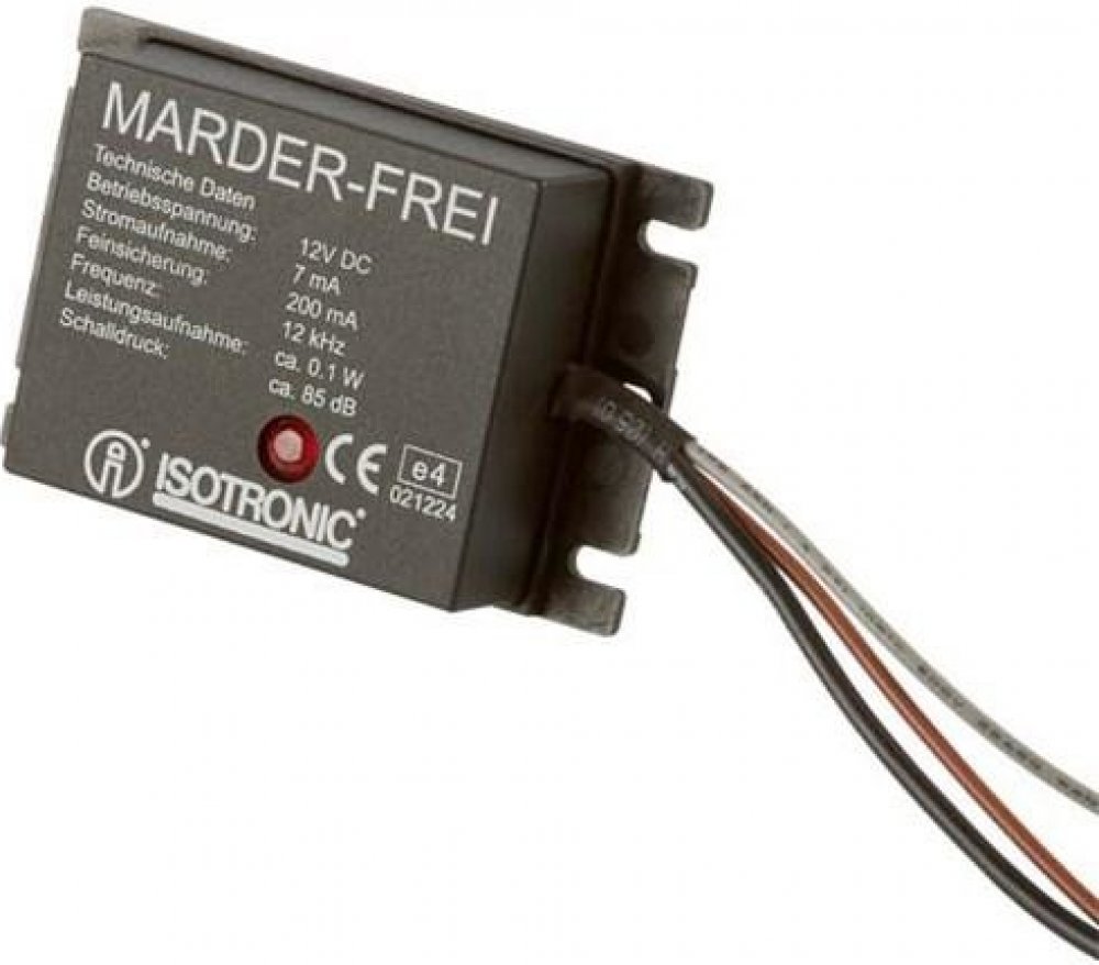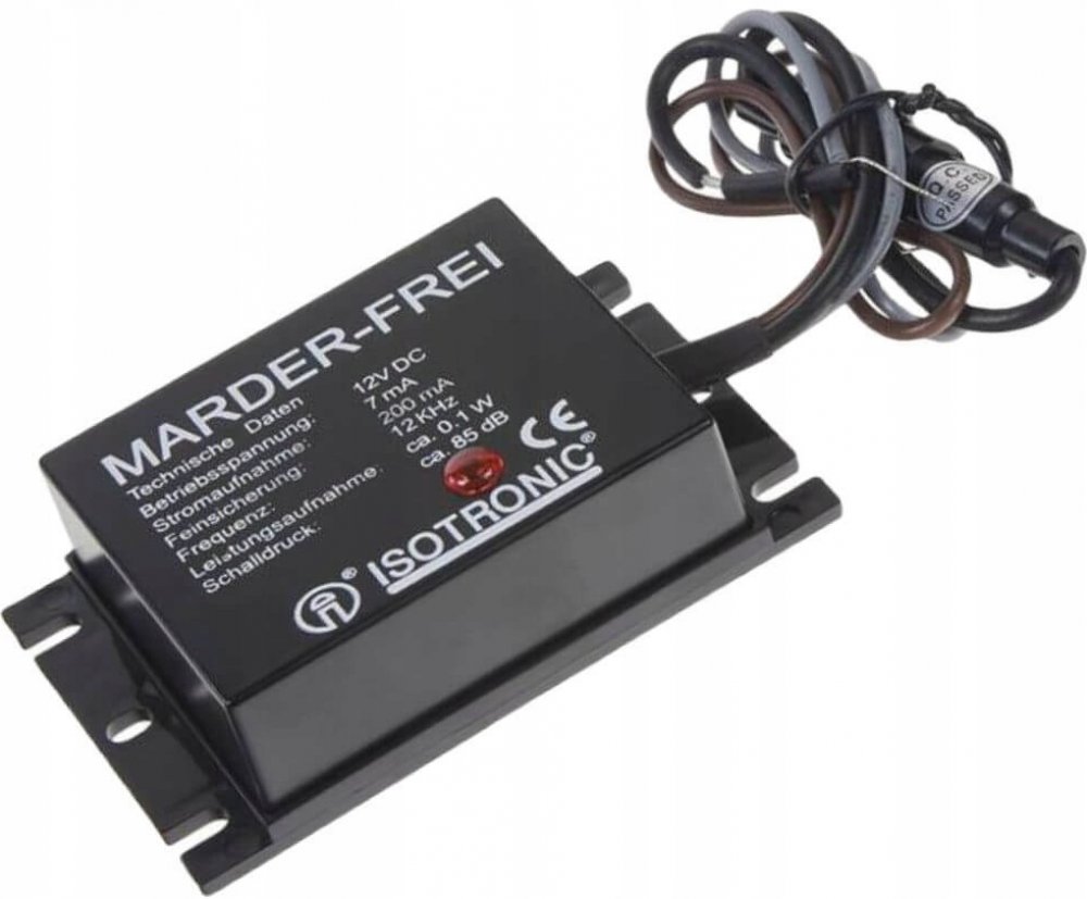 Odpuzovač Kun 12 kHz Venkovní 12 V Bezkunové zařízení generuje akustický signál o frekvenci 12 kHz v intervalech 15 sekund. Tuto ultra vysokou frekvenci kuny vnímají jako rušivou a odpornou, takže prchají z vozidla, ve kterém je zařízení nainstalováno. Vlastnosti • Efektivní díky náhlým vibracím • Bezpečné pro lidi a zvířata Specifikace produktu Šířka 87 mm Výška 57 mm Hloubka 20 mm Hmotnost 101 g Barva Černá Materiál Plast Délka napájecího kabelu 0.30 m Zástrčka Euro / Typ-C (CEE 7/16) Efektivní rozsah 40 m2 Hladina akustického tlaku 85 dB Počet produktů v balení 1 kusů