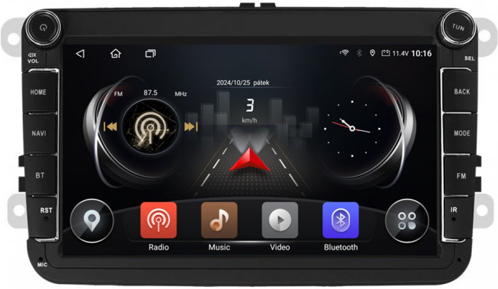 Srdcem našeho autorádia je osmijádrový procesor, který zajišťuje bleskurychlou odezvu a bezproblémovou funkčnost. Spolu s 4GB RAM a 32GB vnitřní pamětí dokáže bez námahy zvládnout i ty nejnáročnější aplikace. Užijte si intuitivní ovládání na velké 8" QLED dotykové obrazovce s vysokým rozlišením 1280x720 pixelů. Každá ikona, každé video a každý detail je zobrazen s neuvěřitelnou ostrostí a jasem.