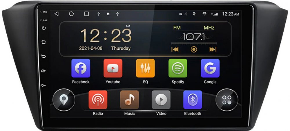 Výkonný 2din multimediální systém, vybavený velkou 9'' Qled dotykovou kapacitní obrazovkou s rozlišením 1280x720 a operačním systémem Android 12 a funkcí Android auto a Apple carplay