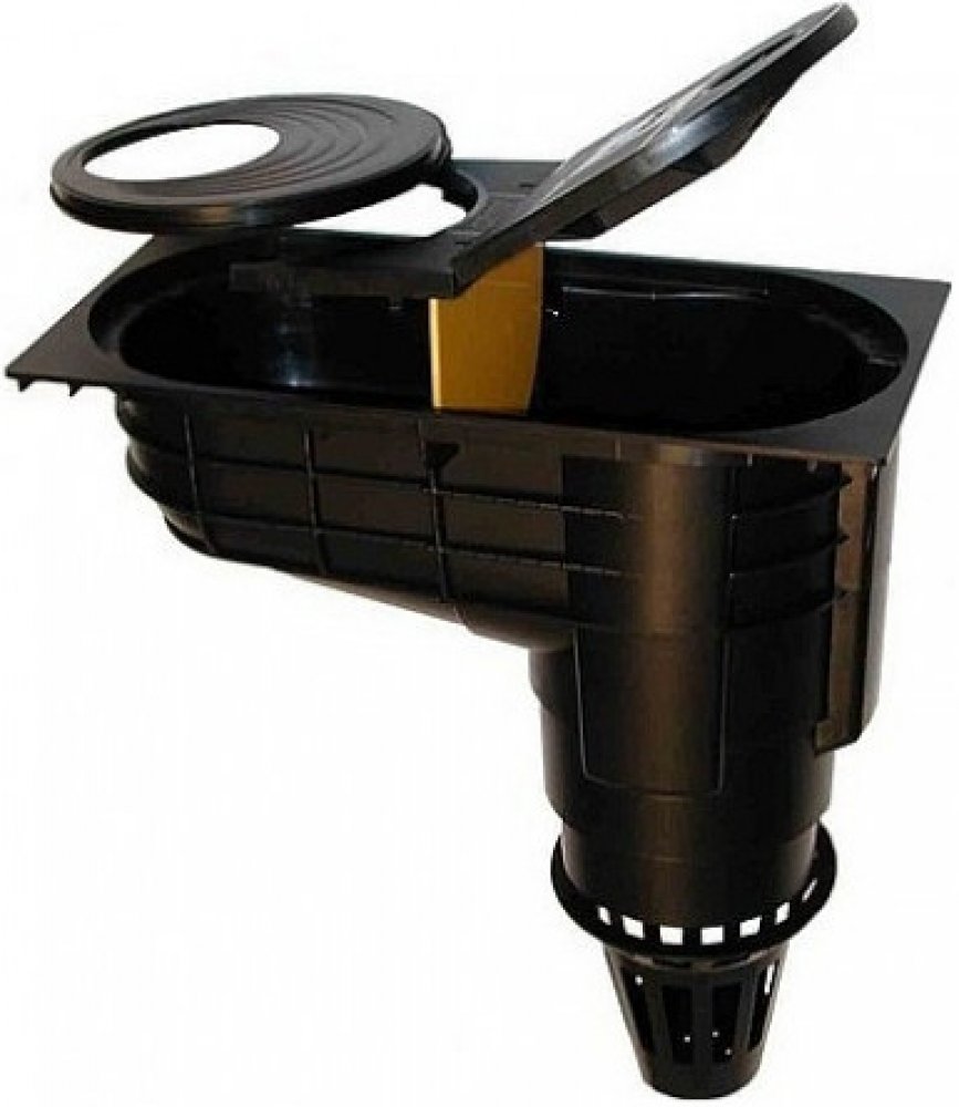 Lapač střešních splavenin - geiger se spodním odtokem je vyroben z polypropylenu. Jeho instalace je velmi snadná. Zajišťuje odvod dešťové vody z okapových svodů. Pro svody o průměry 75, 80, 90, 100, 110, 120, 125 mm. Odtokový otvor je přizpůsoben pro kanalizační trubky o průměru 110mm. Uvnitř je umístěn košíček na zachytávání listí. Barva černá.