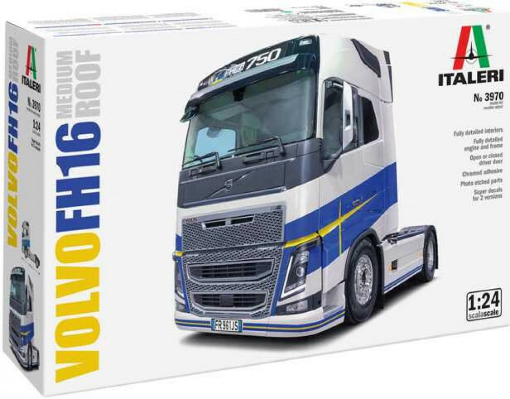 Balení neobsahuje lepidlo, štětce, barvy a ani jiné další příslušenství.CharakteristikaItaleri plastikový model tahače Volvo FH16 Medium Roof v měřítku 1:24 ke slepení. Délka 24,6 cm, stavební obtížnost 5.