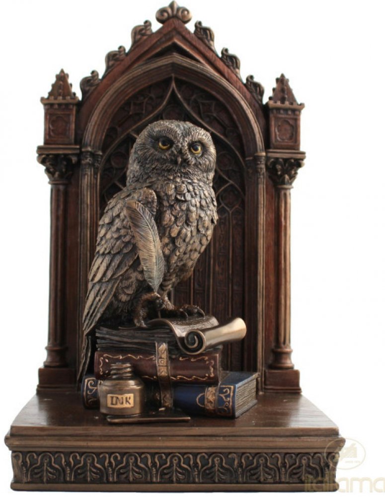 "Bronzová" socha z pryskyřice, ručně dodělaná v každém jednotlivém detailu. Moudrost je nejvyšší a nejušlechtilejší vlastnost každého vládce, zdroj důležitých voleb a rozhodnutí, která mohou změnit osud království i armády v boji proti nepříteli. Z tohoto důvodu jsou králové minulosti zastoupeni poradní sovou poblíž svého trůnu, symbolem moudrosti.