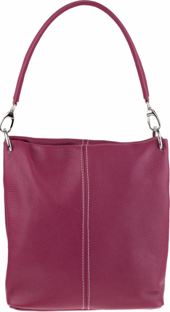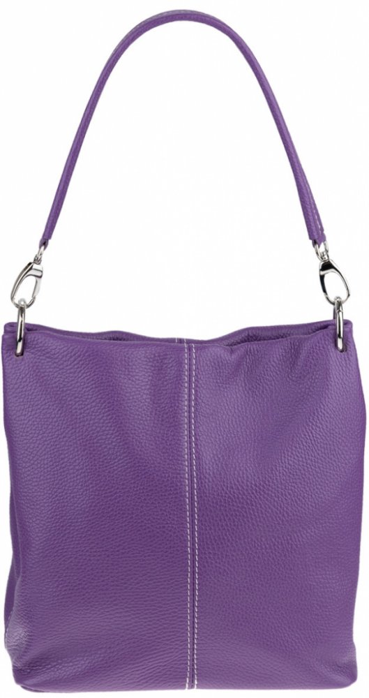 Klasická praktická kabelka s jednoduchým designem ve fialové barvě. Nositelná přes rameno. Kabelka je uzavíratelná na zip a je vyrobena z pravé poctové kůže. Uvnitř kabelky najdeme přepážku uprostřed, která zároveň slouží jako kapsa na zip, a na bočních stěnách pak kapsu na zip a na druhé straně další malou kapsu.Hloubka její dna činí 14,5 cm. Další barevné varianty kabelky naleznete zde.