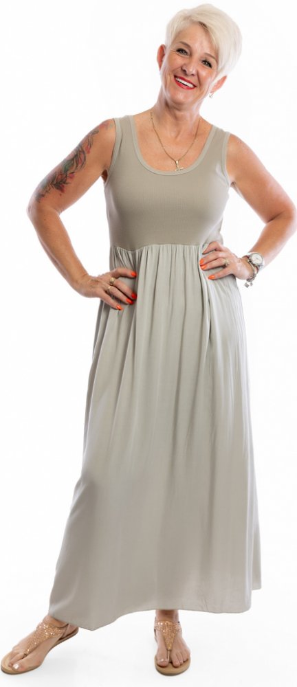 Dlouhé šaty MÁJA jsou šmrncovní kousek, který by neměl chybět ve tvém šatníku. Také ti nápaditě připomínají naše šaty ROSA? Ale tentokrát je to ještě větší výhra na léto, šaty MÁJA jsou bez rukávů. V horní části mají šaty žebrování, díky kterému nádherně pruží. Sukně je krásně dlouhá a splývá. Sedí na postavu s velikostí M-2XL. Vyber si z našich krásných, letních barev.