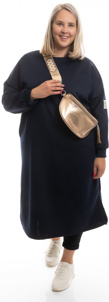 Mikinové šaty VILMA jsou rovného střihu a mají dlouhý rukáv. Šaty jsou dlouhé pod kolena a jsou jednobarevné. Nemají kapuci a rukávy jsou na konci do gumy a mají dva vodorovné švy. Levý rukáv má i bílou ozdobnou nášivku s textem. Pokud chceš být stylová a cítit se pohodlně, jsou tyhle šaty přímo pro tebe. Nejlépe sednou na postavu s velikostí L až 2XL a máme je v nabídce ve spoustě krásných barvác...