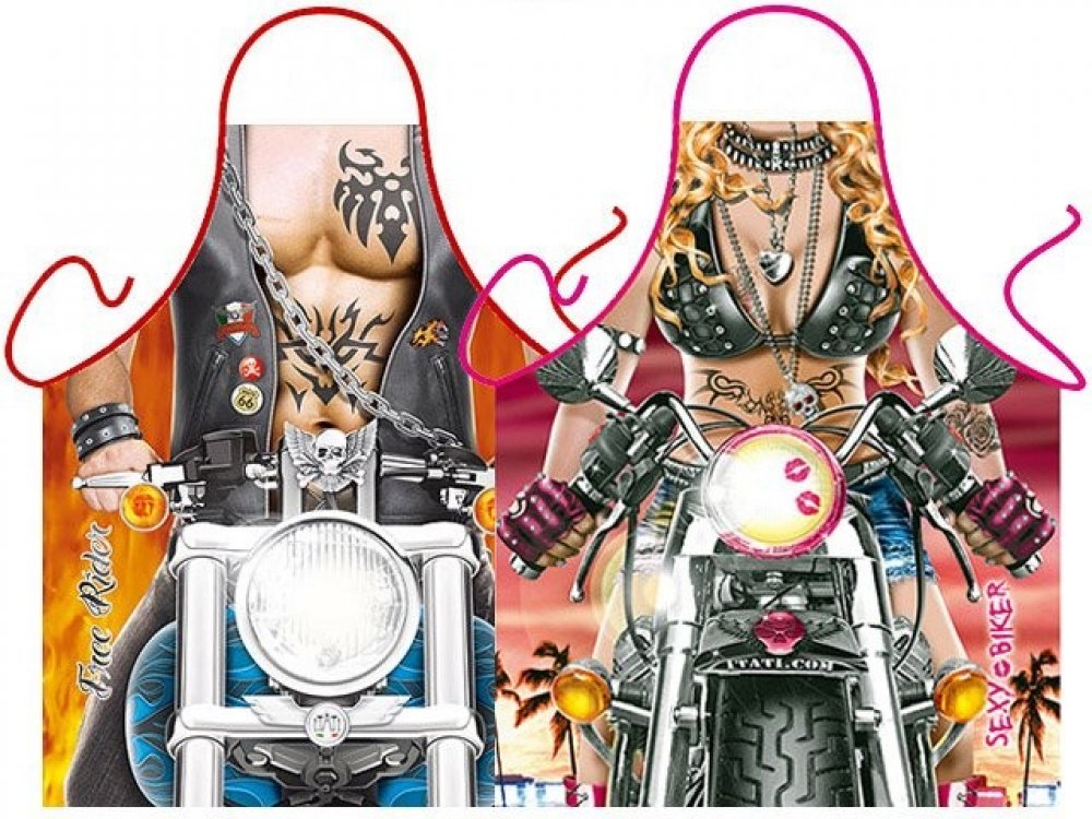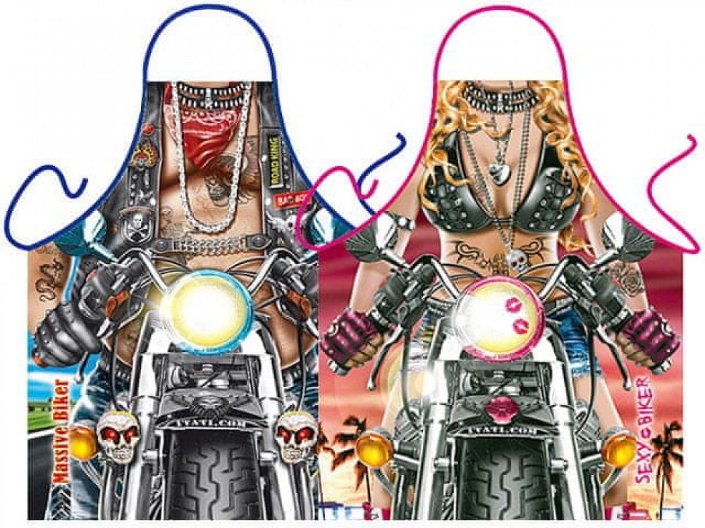 Zástěry Starý motorkář a motorkářka jsou pěkné a kvalitní humorné zástěry vhodné pro každou dvojici, která miluje jízdu na motorce, zápach benzínu a také motorkářský život. Toto dvojbalení koupíte za zvýhodněnou cenu.