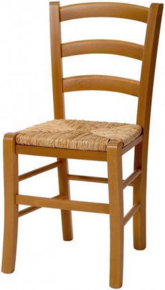 Dřevěná jídelní židle z masivního buku s vyplétaným sedákem přírodním rákosem.