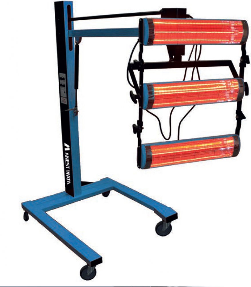 Vybaven třemi 500 mm dlouhými infrazářiči osazenými 1kW krátkovlnný lampami