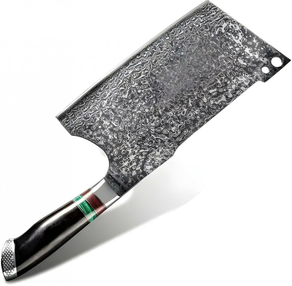 Ručně vyráběný kuchyňský sekáček HARAHU MA-29016. Nůž je vyráběn z damaškové oceli (damascene steel). Čepel je vyrobena z vrstveného ocelového kompozitního kování. U tohoto nože je to 103 vrstev. Tímto kováním vzniká unikátní vzor. Mezi tyto vrstvy je vloženo ocelové jádro VG10. Nůž má tvrdost 60-62 HRC, což zaručuje dlouhodobou ostrost a životnost.