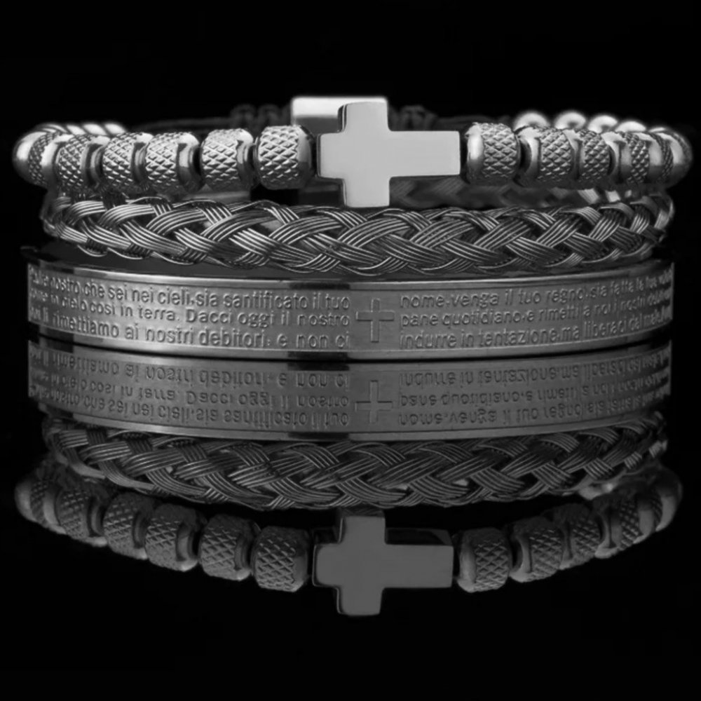 Náramky Dolorite rozzáří vaši ruku nádechem luxusu a výjimečnosti. Tato trojice náramků kombinuje zlatou barvu v různých stylech: od klasického válcovaného vzoru přes matné korálky až po plochý náramek s gravírovaným textem. Každý kus je navržen tak, aby vynikal samostatně nebo jako celek. Ideální pro ty, kteří milují eleganci a nadčasovost, jsou tyto náramky perfektním společníkem pro denní nošení nebo výjimečné příležitosti.