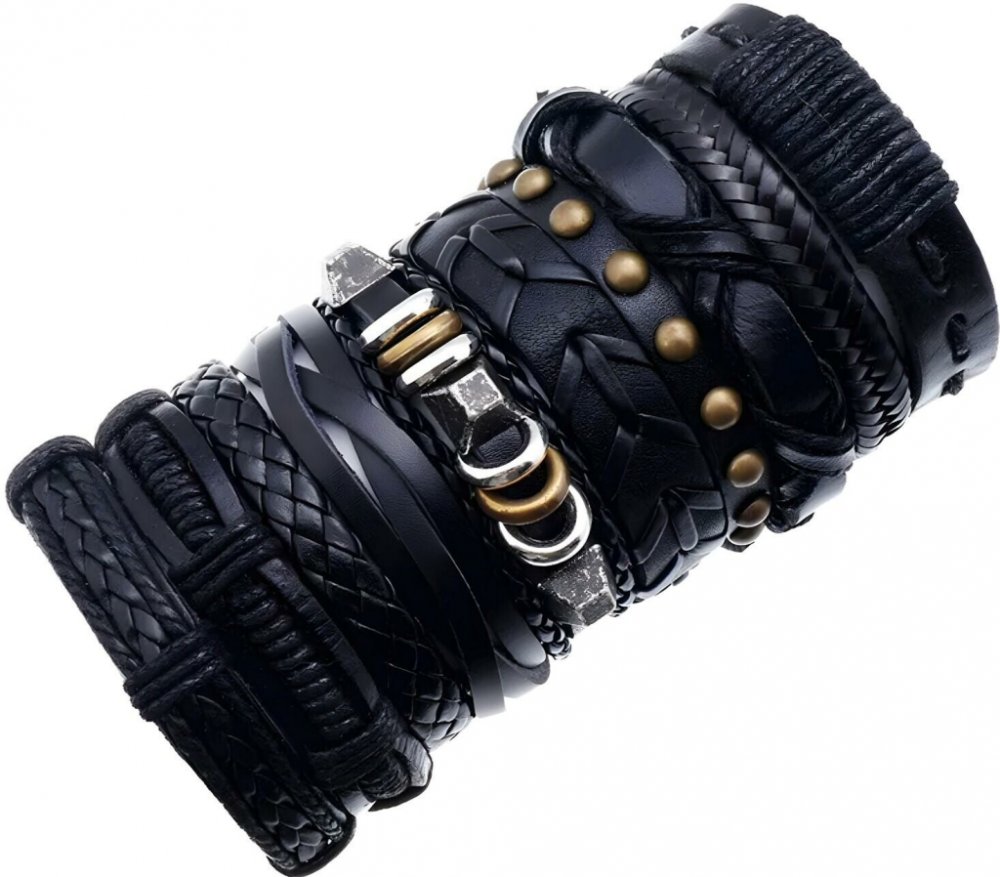 Tato sada náramků v černém provedení kombinuje různé textury, vzory a detaily, aby vytvořila stylový a drsný doplněk pro moderní muže. Každý náramek v sadě nabízí něco jedinečného, od pletené kůže po kovové ozdoby a nýtování, čímž vzniká robustní a výrazný vzhled. Kovové prvky a vrstvené kožené pásky dodávají náramkům nádech industriální elegance a individuality.