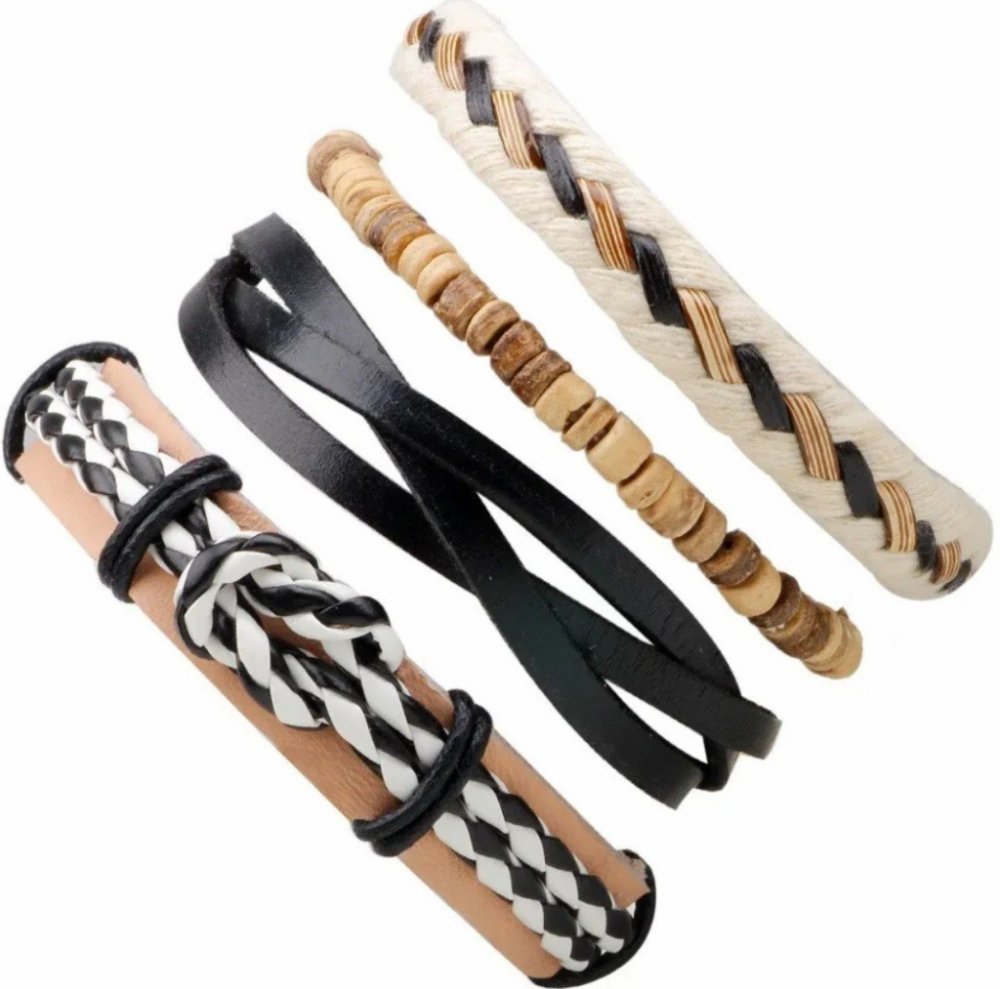 Sada náramků Organic spojuje přírodní materiály a ručně propletené vzory, které přinášejí do vašeho stylu rustikální a autentický vzhled. S kombinací přírodních barev, jako jsou běla, hnědá a černá, tyto náramky působí jemně a nenuceně. Každý náramek má jedinečný design, od jednoduchých dřevěných korálků po splétané kožené řemínky, což dodává této sadě zajímavou rozmanitost.