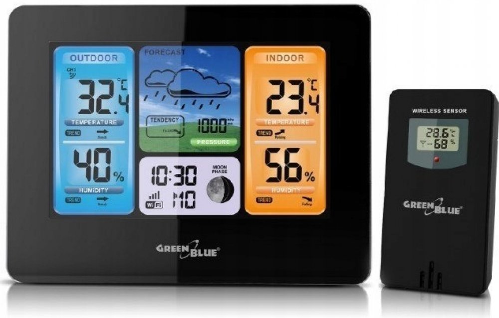 Předpověď počasí na 12–24 hodin na základě sledování teploty, tlaku a vlhkosti.