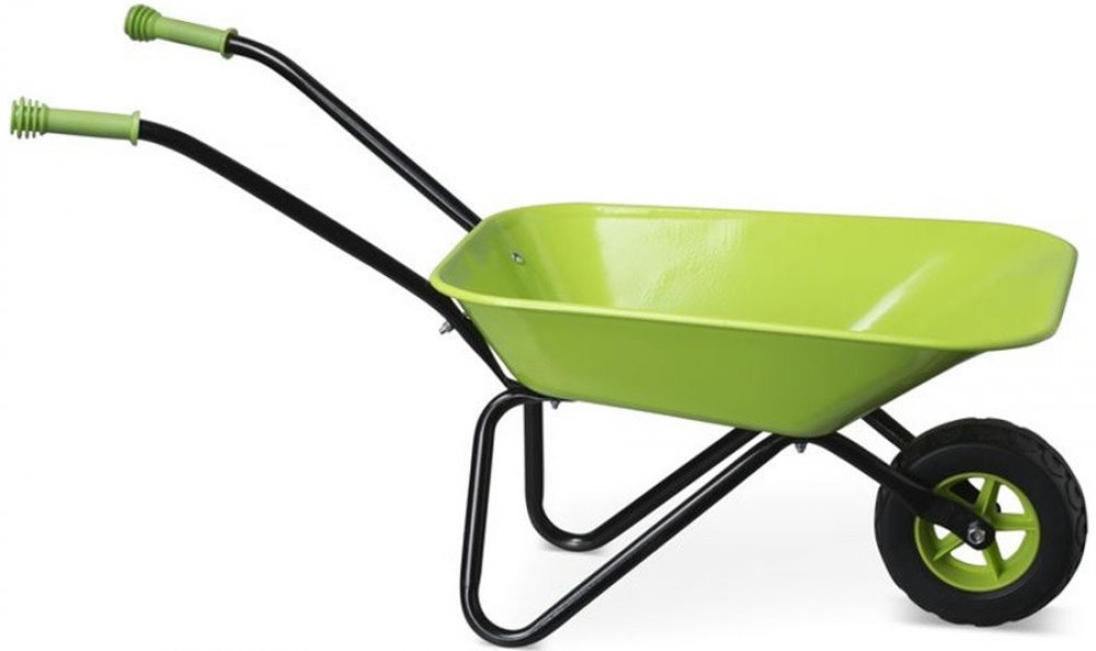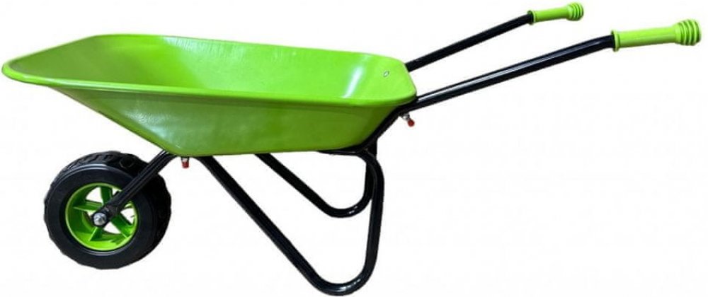 Dětské zahradní kolečko. Korba plechová lakovaná o objem 9 litrů a síle plechu 0,5 mm s plastovým kolem.