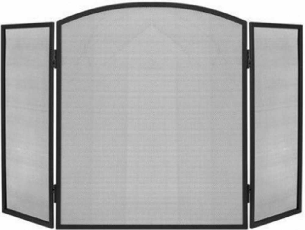 Třídílná krbová zástěna na ochranu proti vylétávajícím jiskrám a uhlíkům.