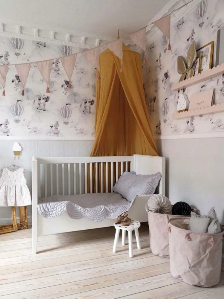 Nádherný baldachýn, se kterým můžete vytvořit s pomocí polštářů uvnitř kouzelný dětský či čtenářský koutek nebo zútulnit dětskou postel. Tento dekorativní detail dává dětskému pokoji luxusní pocit. Textilie, je mírně průhledná.