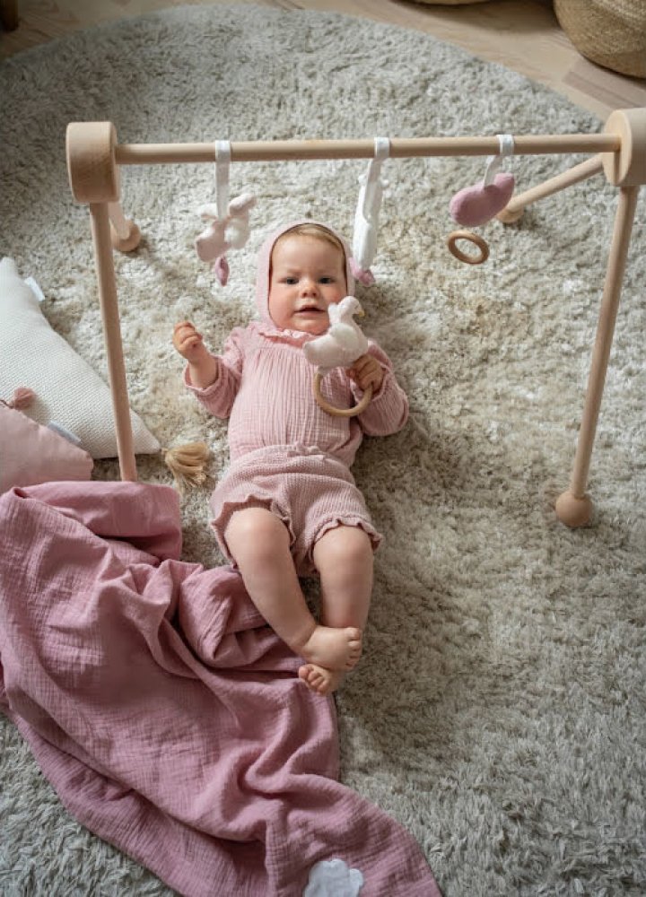 Hrazdičku je možné doplnit s Jabadabado měkkými plyšovými hračkami na zavěšení, které nabídnou děťátku rozptýlení a zároveň stimulují rozvoj jeho vizuálních a pohybových schopností.