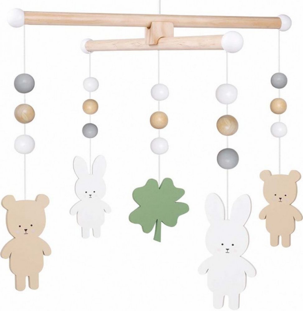 Roztomilá dekorace nad dětskou postýlku nebo přebalovací pult. Obsahuje roztomilé postavičky medvídka a zajíčka v krásných barvách. Barvy a vzory pomáhají stimulovat smysly a pohyby dítěte během prvních měsíců.Barva: MultiMateriál: DřevoRozměr: 36 x 36 x 36 cm