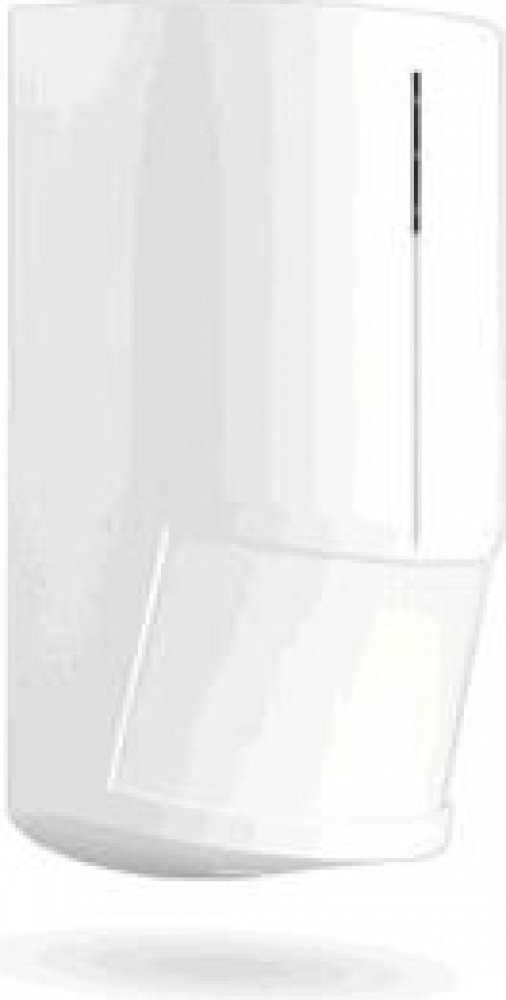 Pohybový PIR detektor kryje až 112m² podlahové plochy. Digitální analýzou je dosažena vysoká odolnost k falešným poplachům. Má vstup pro připojení senzoru otevření dveří.
