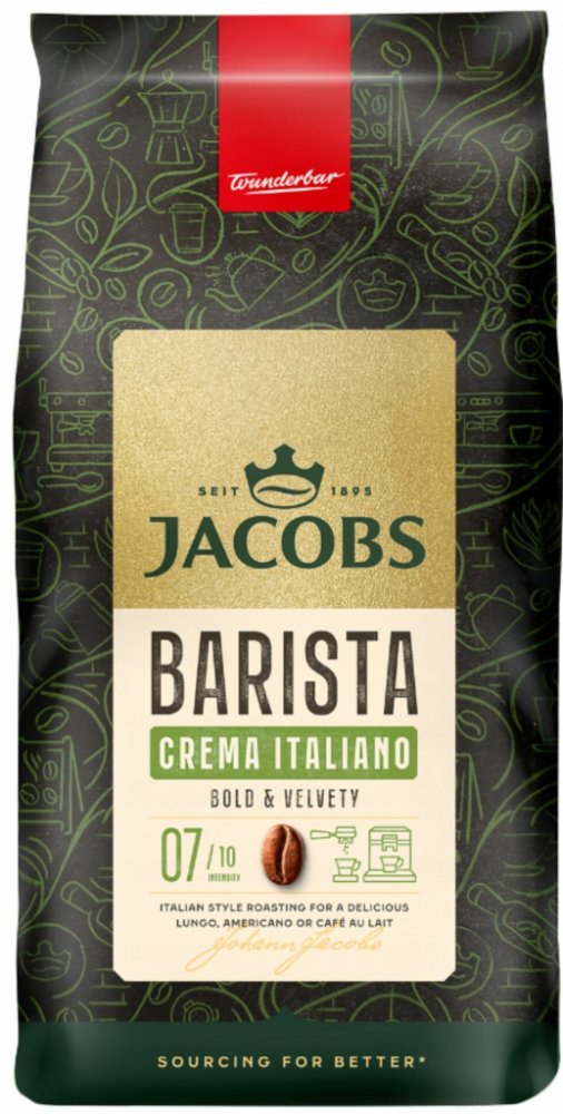 Jacobs Barista Crema Italiano zrnková káva je pomalu pražená tradiční italskou metodou, která vytváří dokonalou rovnováhu mezi intenzivní chutí a jemnou strukturou. Aroma pomalu pražených kávových zrn se harmonicky spojuje s tóny sušeného ovoce a karamelu. Je ideální volbou pro milovníky kvalitní kávy, kteří si chtějí vychutnat barista zážitek ve vlastní kuchyni.