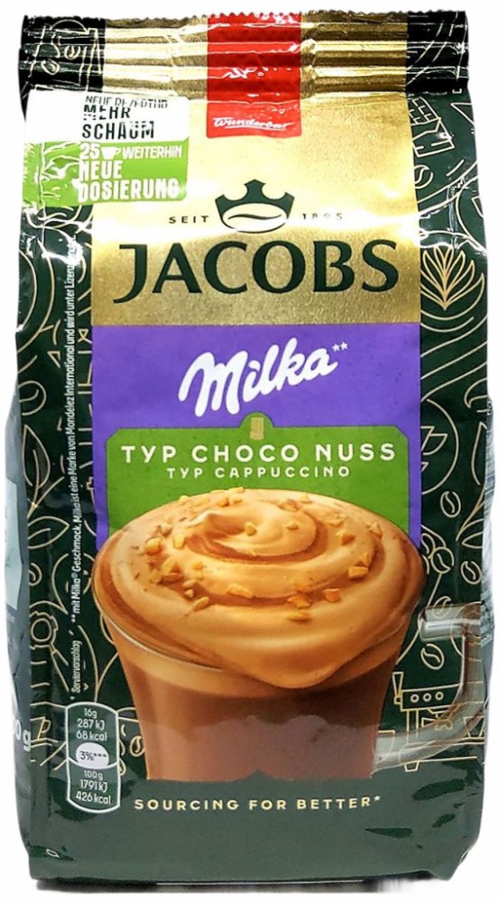 Jacobs - cappuccino - ochucený kávový nápoj s příchutí čokolády milka a ořechů