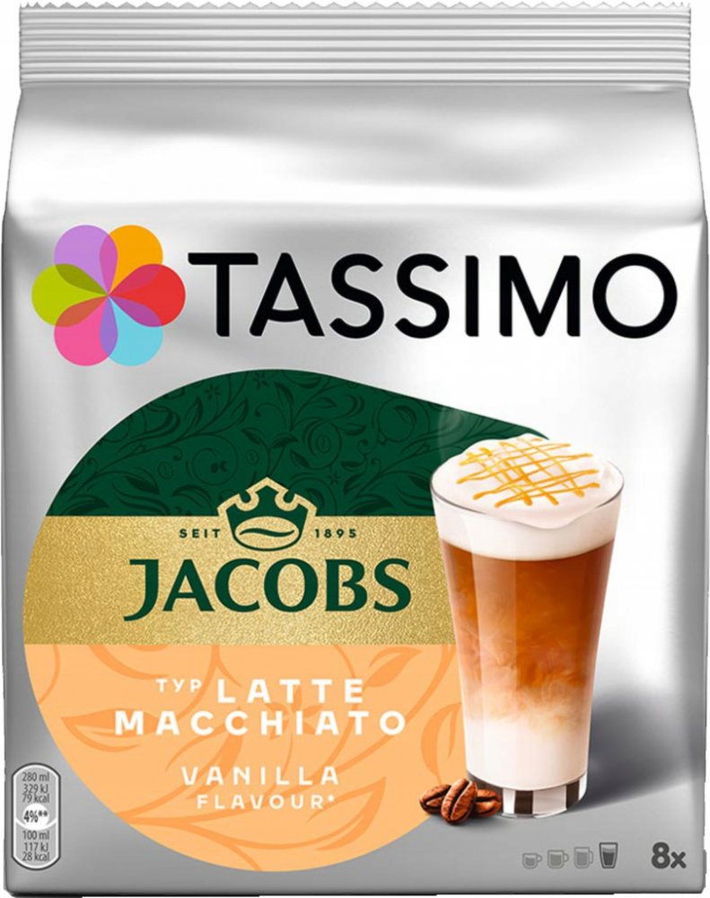Kapsle do TASSIMO LATTE MACCHIATO VANILLA, 16 kapslí – 8 velkých káv XL Latte