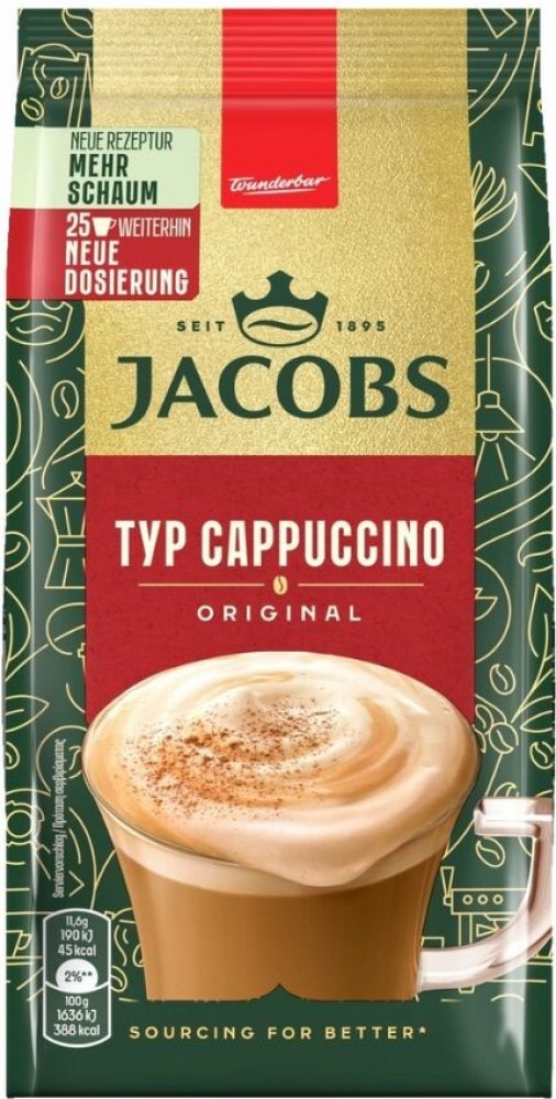 Dokonalá volba pro všechny, kdo si chtějí vychutnat jemné, krémové cappuccino s vyváženou chutí kdykoli během dne. Tato oblíbená cappuccinová směs spojuje kvalitní kávu značky Jacobs s lahodnou mléčnou pěnou, která vytváří harmonický nápoj s příjemným aroma a sametovou konzistencí.