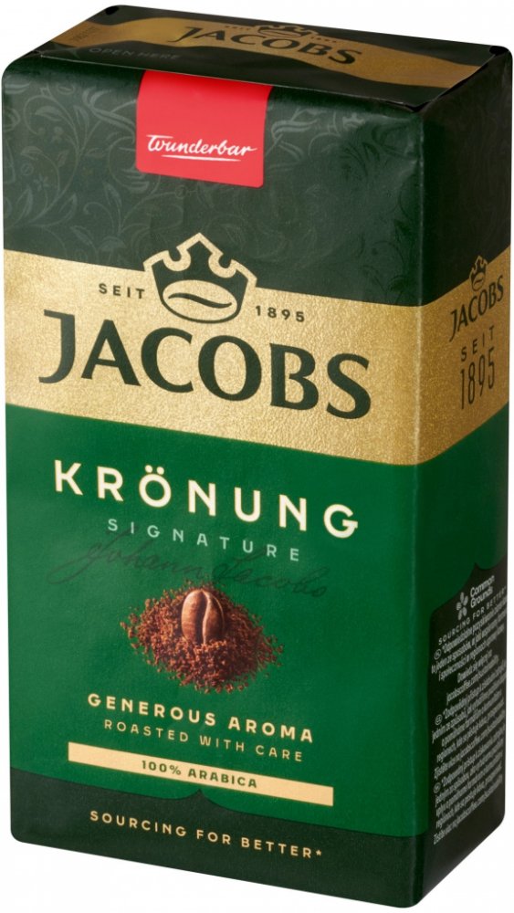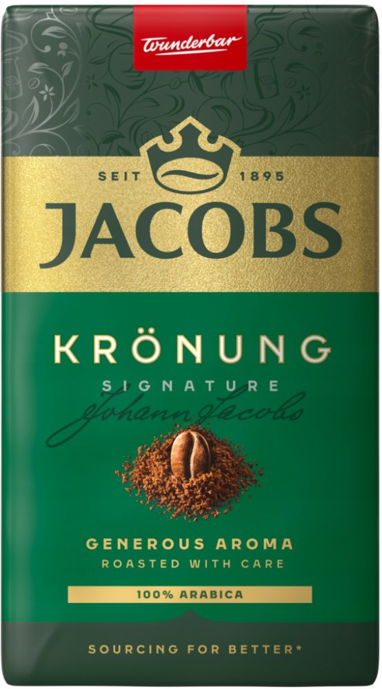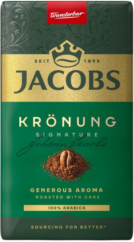 Jacobs Krönung je středně tmavě pražená a středně namletá káva. Chuť je příjemně plná, aromatická, ovocně nakyslá, lehce nahořklá, vyrovnaná a doplněná jemnou dochutí. Ideální pro zalití ve vašem oblíbeném hrnečku. Pražená vakuově balená mletá káva, která vám udělá skvělou společnost při každém rodinném a přátelském posezení. Svůdná lechtivá aroma typická pro značku Jacobs. Exkluzivní středně pražená směs kávových zrn arabiky a robusty výjimečné kvality s delikátní plnou chutí a svěží mírnou ovocnou kyselostí. Perfektní pro přípravu kávy na turecký způsob. Intenzita chuti 5/10