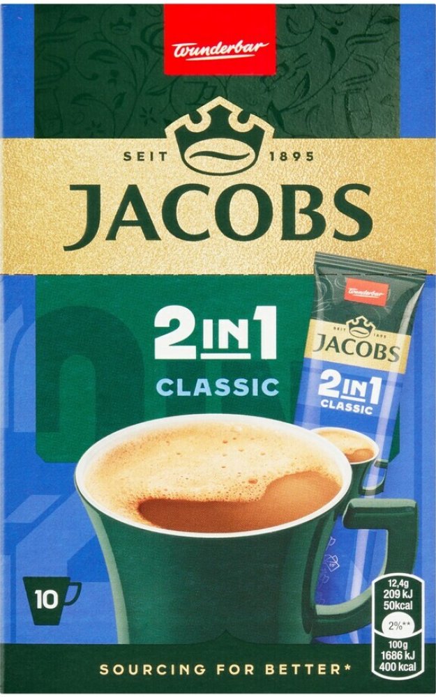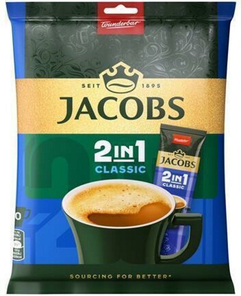 Jacobs 2in1 Classic – ideální volba pro všechny, kdo si nechtějí ráno vynechat šálek lahodné kávy Jacobs. Praktické balení umožňuje přípravu kdekoli – v práci, na cestách nebo doma.