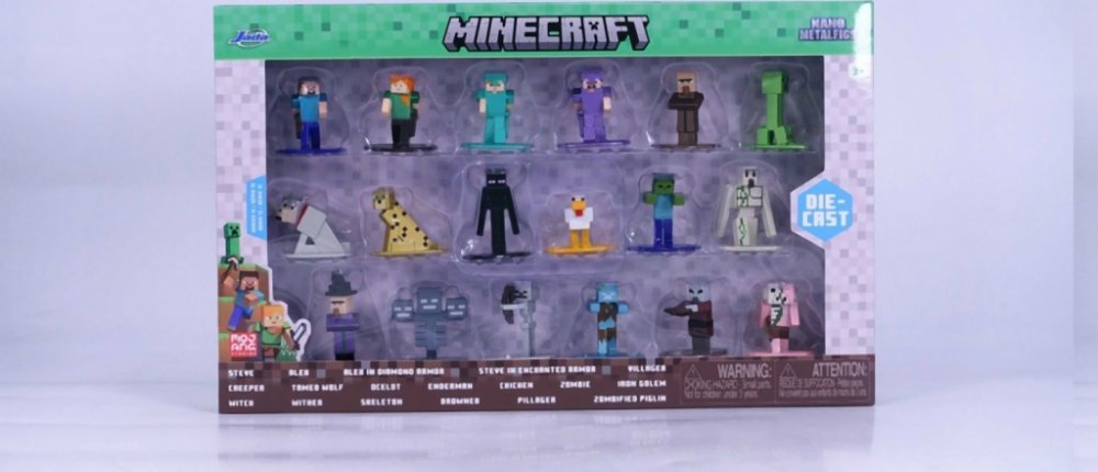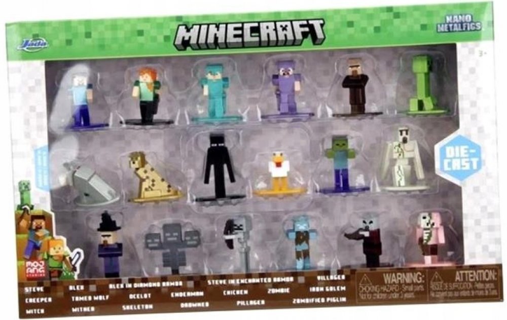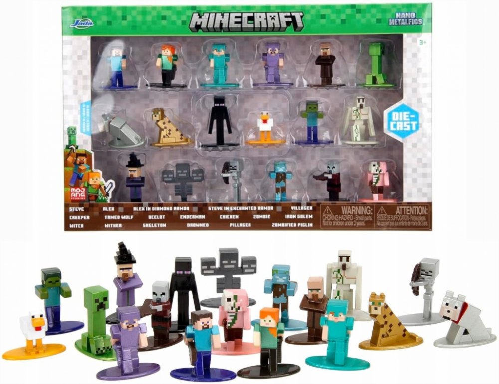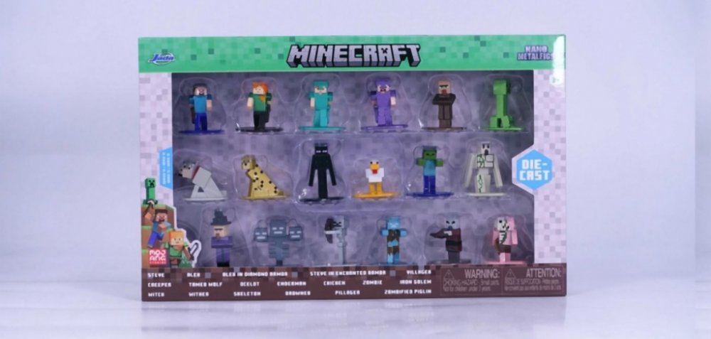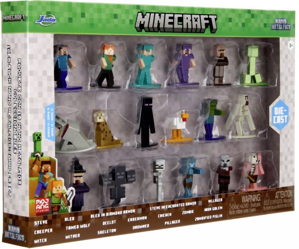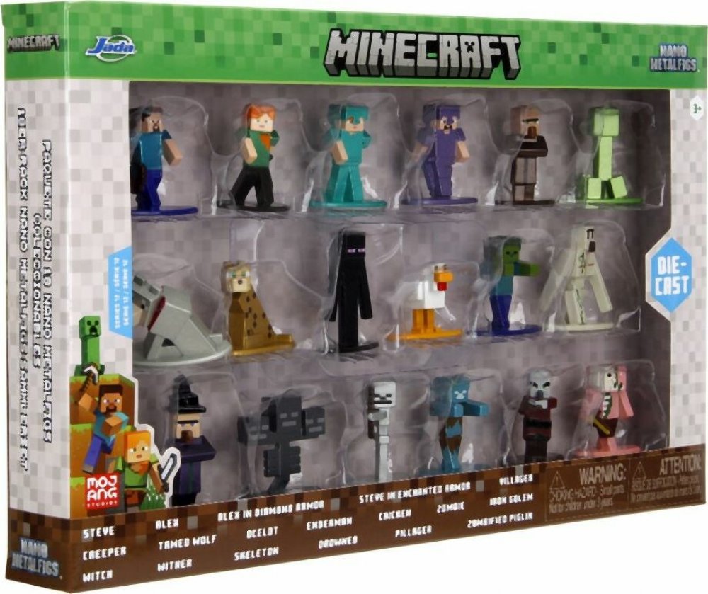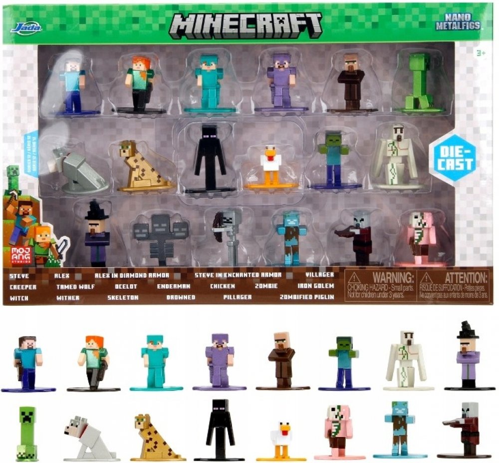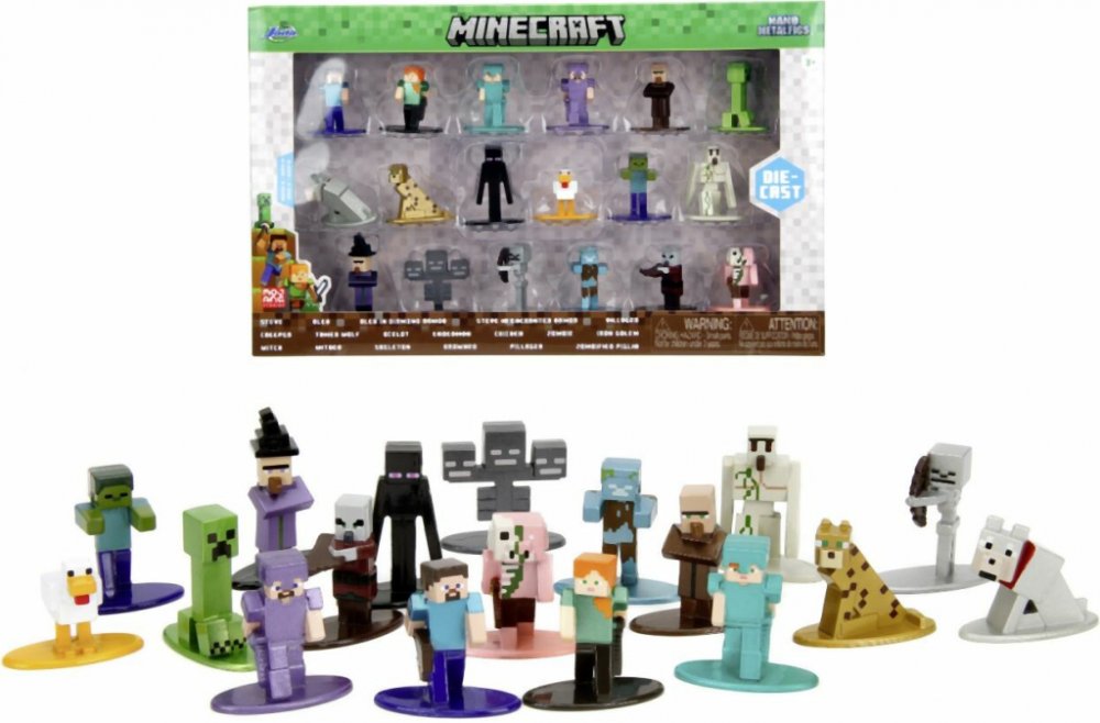 Postavičky jsou vyrobeny z pevného kovu, mají výšku přibližně 4 cm a pyšní se precizním barevným zpracováním. Sada obsahuje široký výběr hrdinů, mobů i zvířat, takže si můžeš vytvořit vlastní mini svět Minecraftu nebo si je vystavit jako sběratelský klenot.