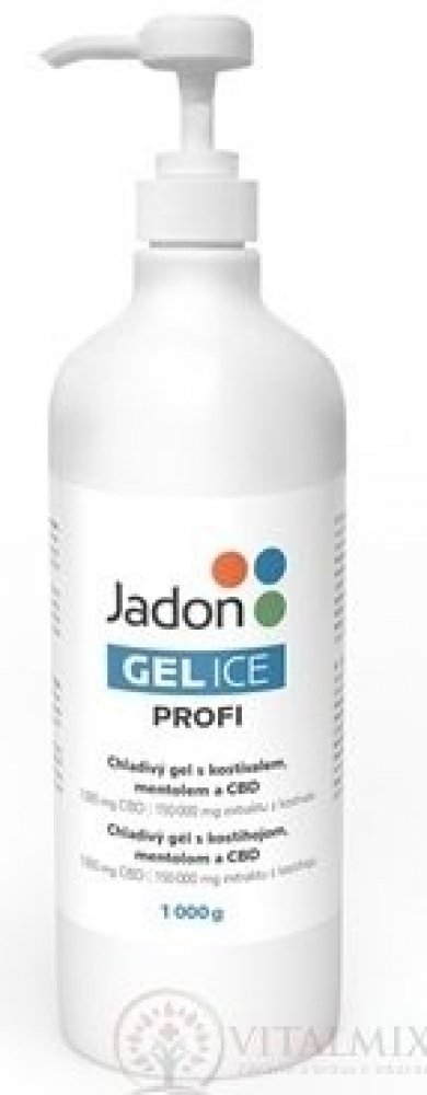 Jadon GEL ICE je čistě přírodní chladivý gel s unikátní kombinací silného kostivalového a mátového extraku s CBD.Jadon GEL ICE je určen pro použití:vyvrtnutí, modřiny atd.pozitivně ovlivňuje omezenou hybnostpo sportovním výkonu a vysoké fyzické námaze jako regenerace na unavené svaly a kloubyvhodný také na masážtěžké nohyrůstové problémy u mládeže – rychlý růst (vhodný od 6 let)Jadon GEL ICE je vyráběn v České republice z vysoce kvalitních regionálních zdrojů za použití nejnovějších technologií. Je plněn do Airless dózy, což zajistí naprosto přesné dávkování a zabrání kontaminaci gelu uvnitř dózy.Balení obsahuje 1000g.