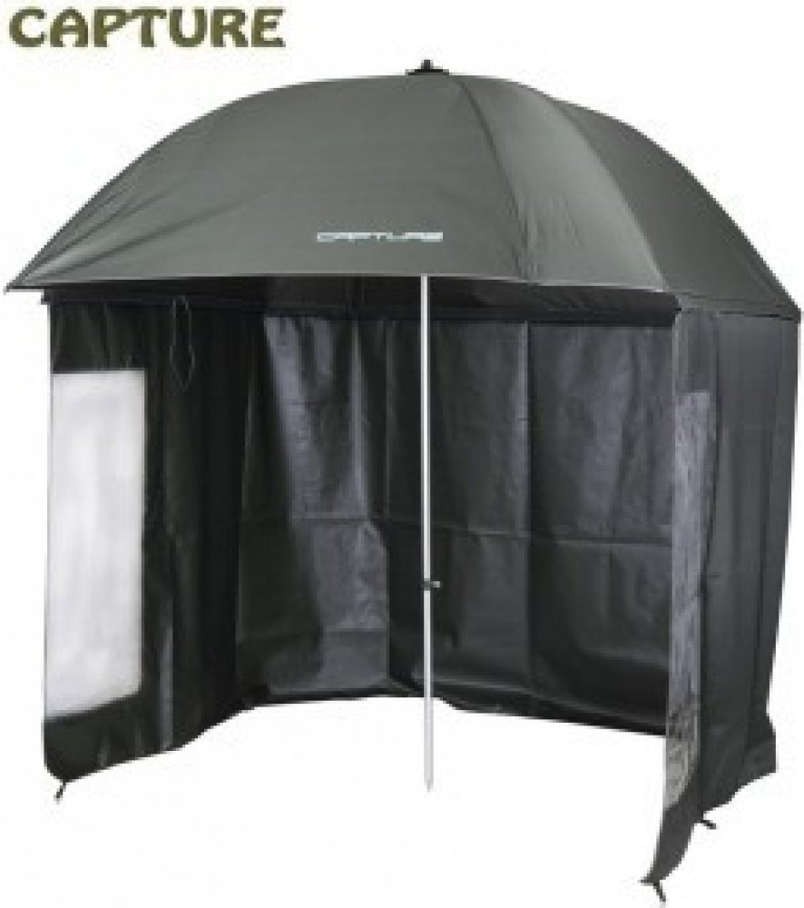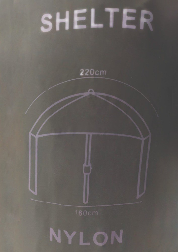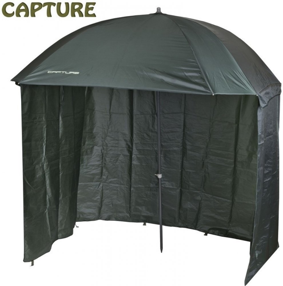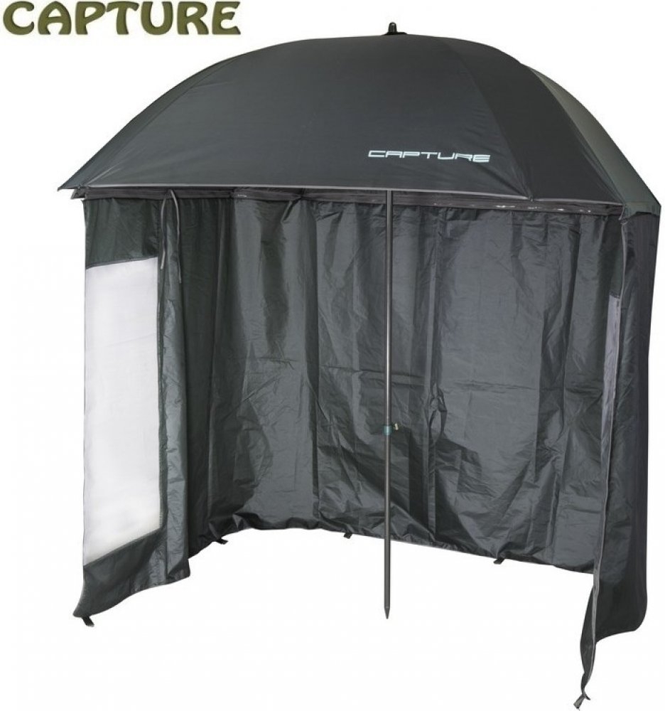 Rybářský deštník s odnímatelnou bočnicí čtvercového tvaru o průměru 2,2 m.