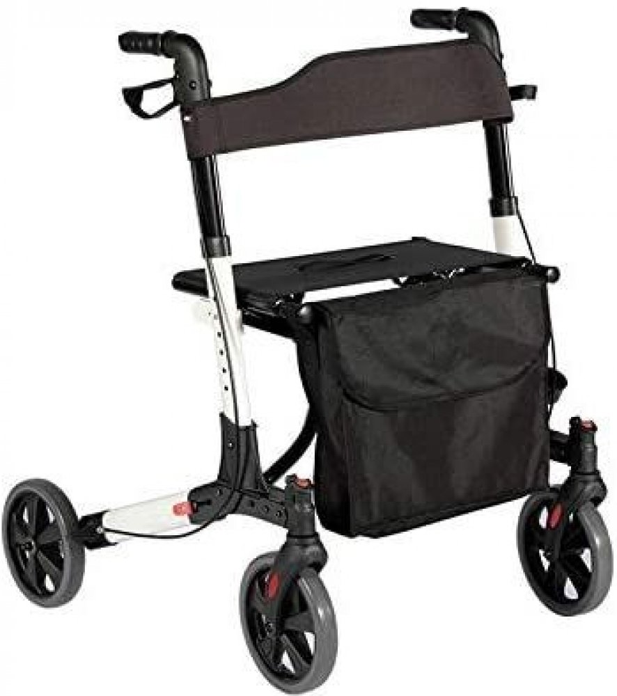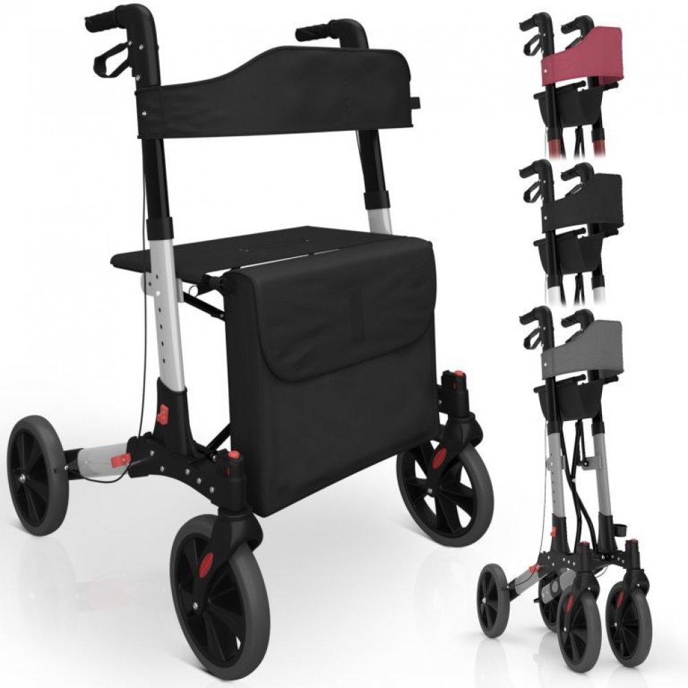 Potřebujete si odpočinout? Pohodlné sedadlo a opěradlo jsou tu pro vás. Praktická taška vám umožní mít potřebné věci vždy po ruce. A když chodítko zrovna nepotřebujete, jednoduše ho složíte a uskladníte.