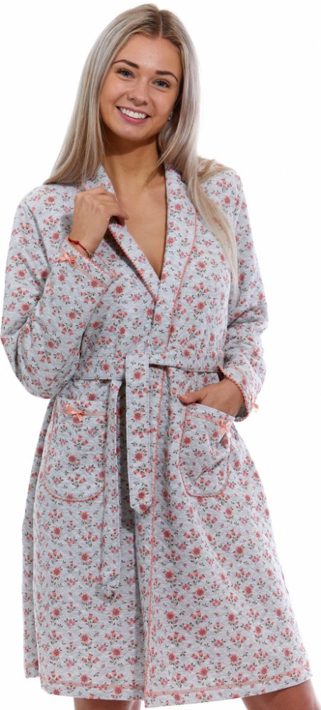 Jahodově červený i šedý romantický luxusní květovaný župan na kojení DARTS