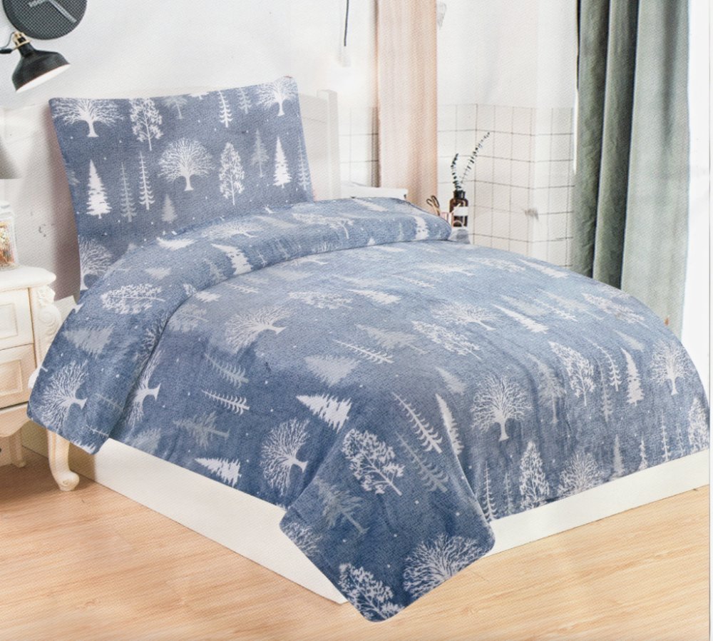 JAHU POVLEČENÍ MIKROFLANEL STROMEČEK ŠEDOmodrý 140x200 70x90