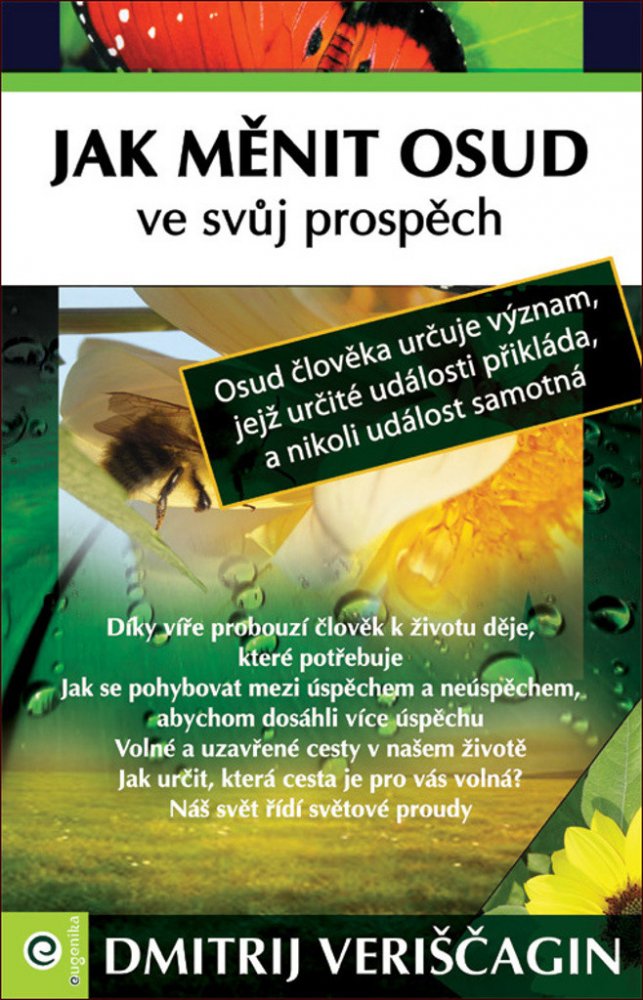 Publikace: Jak měnit osud ve svůj prospěch - Veriščagin Dmitrij. Tato kniha seznamuje čtenáře s pátým stupněm systému DEIR (Další energoinformační rozvoj), což je ucelený systém metod, jež vedou k harmonii, úspěšnému životu a zdraví. D. Veriščagin se zde dotýká závažného problému: jak se neztratit v proudu života. Je nevyhnutné pochopit zákonitosti, které řídí okolní život, a porozumět tendencím světových proudů. Jakmile se tuto dovednost naučíte, už nebudete zbytečně ztrácet čas a plýtvat silami, abyste zvítězili nad něčím, čemu se beztak nelze vyhnout. Na druhé straně si nebudete vytvářet umělé překážky a svůj osud budete pevně ovládat. Naučíte se rozumět světovým proudům, využívat zákonitosti „náhod“, předpovídat budoucnost a měnit uzavřené cesty na volné. Publikace: Jak měnit osud ve svůj prospěch - Veriščagin Dmitrij.