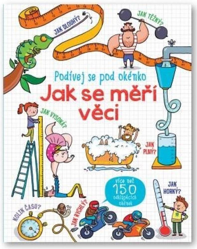 V této knížce se díky odklápěcím okénkům dozvíš o druzích měření a nejrůznějších jednotkách vše podstatné. Víš, kde na světě používají kilometry a kde míle? Jaký je rozdíl mezi obsahem a objemem? Kdo a proč zvolal "Heuréka!" poté, co vyskočil z vany? Zjistíš, jak se díky vhodným předponám vyjadřují vzdálenosti obrovské (třeba k nejbližší hvězdě) i malinkaté (třeba šířka stěny bubliny). A víš, jak funguje tachometr a proč by ti stejné jednokilové závaží připadalo na Jupiteru těžší než na Zemi? Že ne? Tak rychle nahlédni pod okénko a zjisti, jak se věci měří!
