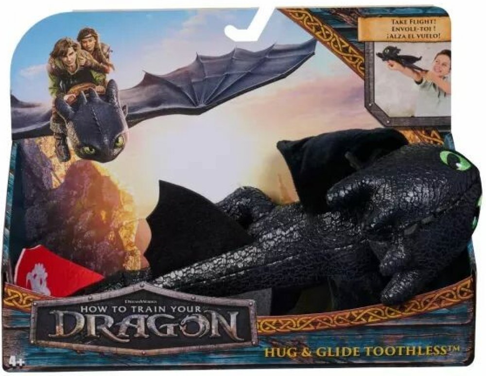 Leť vysoko s Bezzubkou! Tato inovativní plyšová hračka zobrazuje ikonického draka z filmu Jak vycvičit draka s filmovými detaily, včetně měkkého černého plyše s lesklými šupinami, plstěnými drápy a živýma zelenýma vyšívanýma očima. Bezzubka je připravená k letu se svými velkými, sametově měkkými křídly, která dosahují průměru 40 centimetrů, což umožňuje, že se rozběhne a odfrčí na ostrov Berk! Jed...