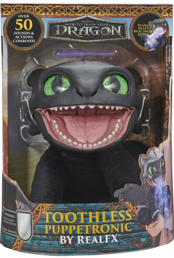 RealFX přivádí k životu Bezzubku, oblíbeného černého draka z filmové série Jak vycvičit draka, nyní v podobě interaktivní hračky. Díky revoluční technologii Puppetronics spojující klasickou loutkohru s animatronikou nabízí realistické pohyby, zvuky a reakce, které si zamilují děti i sběratelé. Reaguje na doteky a pohyby, vydává zvuky, zpívá, vrčí a komunikuje ve své unikátní řeči. Nabízí blikající...
