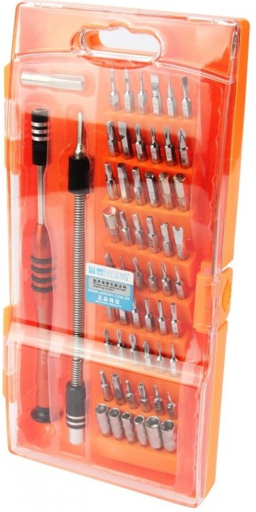Sada obsahuje 58ks nejrůznějších tvarů hlavic, které si lze představit. K tomu získáte také precizní šroubovák, pevný a pružný nástavec a již zmíněné vyměnitelné chrom-vanadiové bity a nástrčné hlavice, které použijete zejména při opravách a montážích elektroniky, počítačů nebo modelářství.